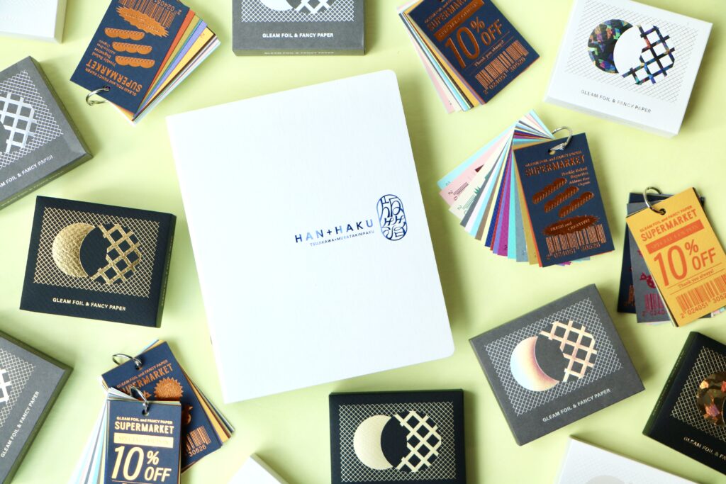 また、ペーパーボイス東京でも「箔とファンシーペーパーのコラボ展MIX@東京」が開催されることが決定いたしました!同展示会では、「箔とファンシーペーパーのコラボ展5th」の巡回展示に加え、箔と紙の実用的な見本帳「HAKU+KAMI」シリーズや、今夏に制作された村田金箔グループ160周年記念見本帳「HAN-HAKU」なども公開予定となっております。