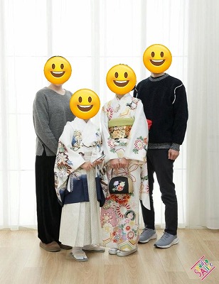 子供はドレスや着物を着ることができるので、まだ家族写真に乗り気で、今年はセーフ!