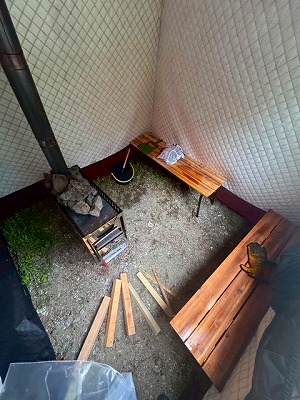 コテージの近くには綺麗な川があり、そのすぐ傍でテントサウナをしました。